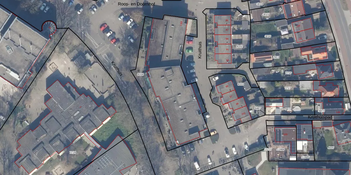 Het perceel waarop Kruithuis 27 staat heeft een oppervlakte van 2050 m². Dit is een zeer groot perceel. De perceeloppervlakte wordt geregistreerd door het Kadaster. Gedetailleerde informatie over de maten van dit perceel kunt u vinden in het rapport Kadastrale kaart met maatvoering van Kruithuis 27.