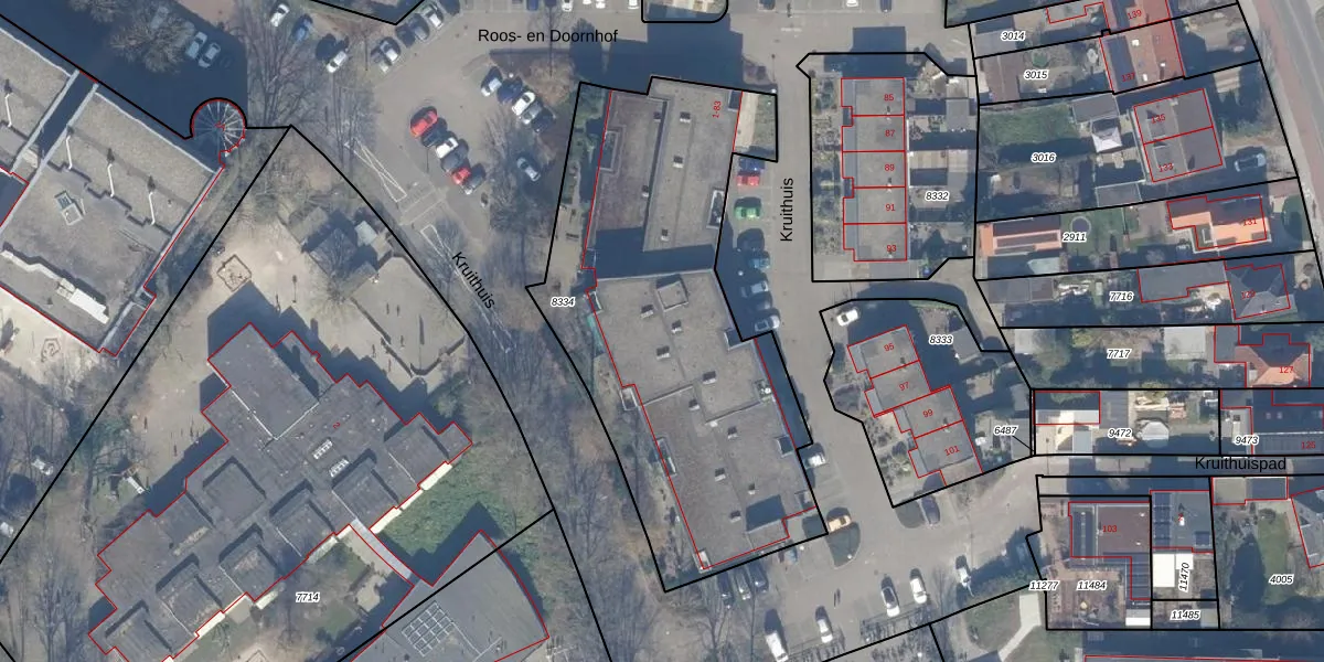 Het perceel waarop Kruithuis 55 staat heeft een oppervlakte van 2050 m². Dit is een zeer groot perceel. De perceeloppervlakte wordt geregistreerd door het Kadaster. Gedetailleerde informatie over de maten van dit perceel kunt u vinden in het rapport Kadastrale kaart met maatvoering van Kruithuis 55.
