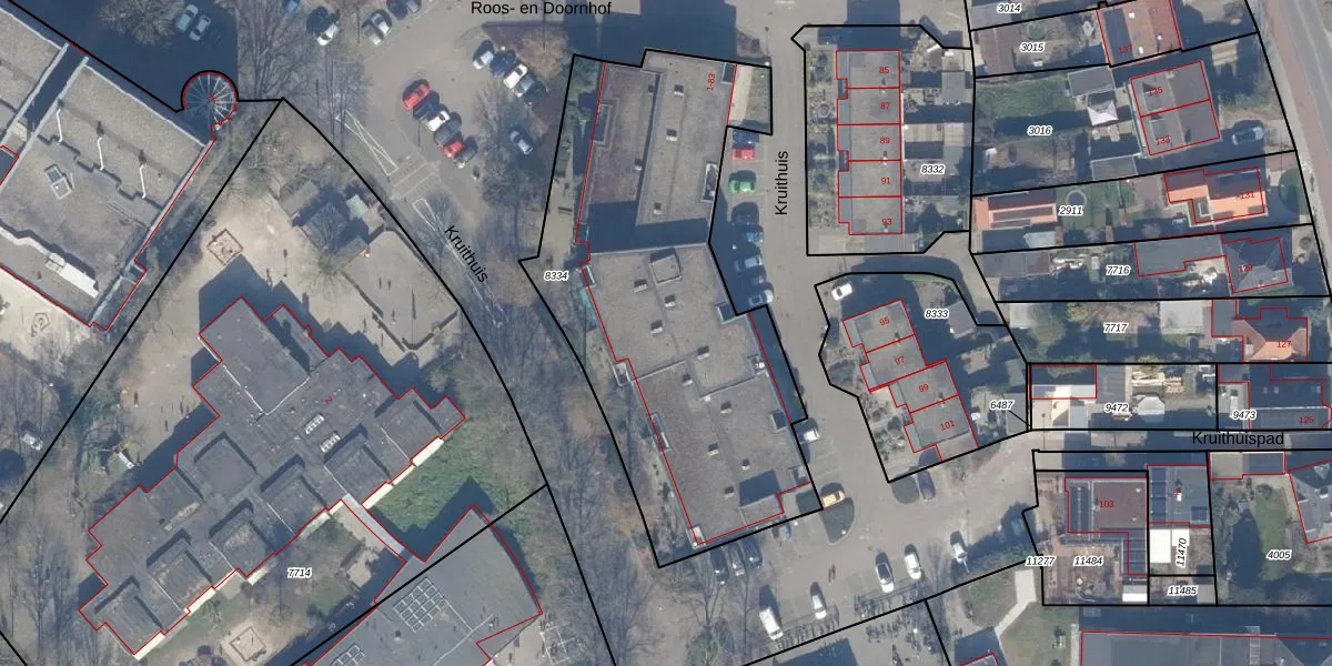 Het perceel waarop Kruithuis 57 staat heeft een oppervlakte van 2050 m². Dit is een zeer groot perceel. De perceeloppervlakte wordt geregistreerd door het Kadaster. Gedetailleerde informatie over de maten van dit perceel kunt u vinden in het rapport Kadastrale kaart met maatvoering van Kruithuis 57.