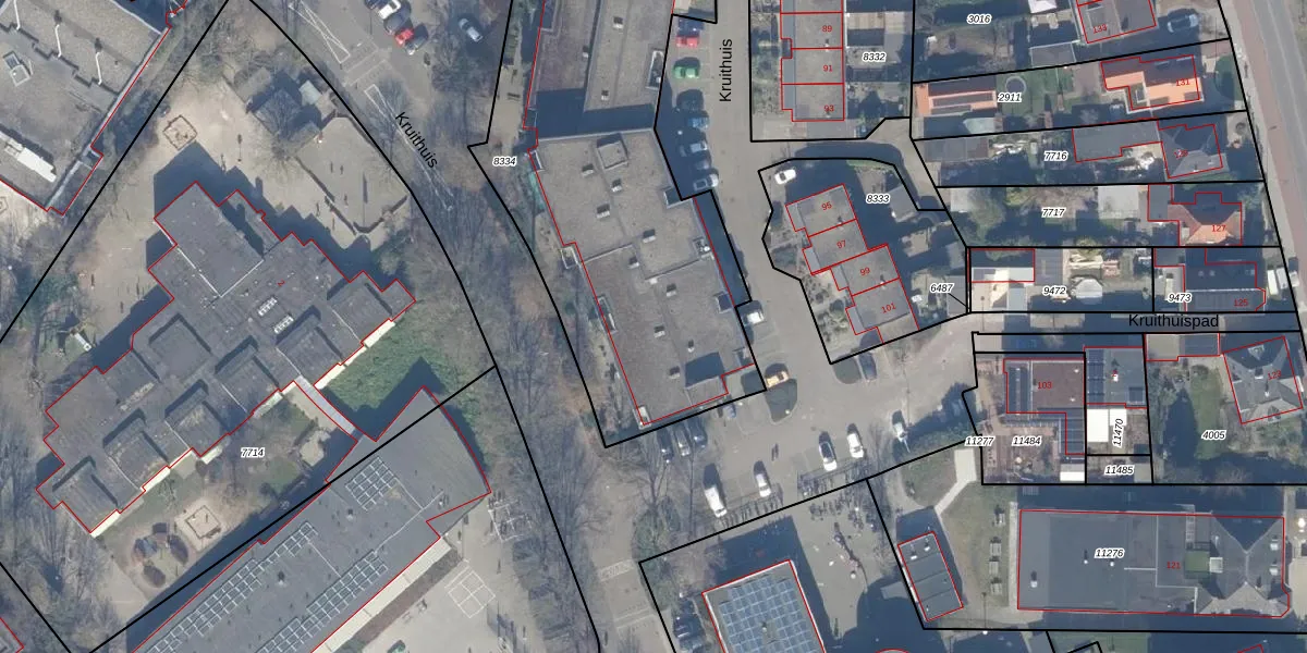 Het perceel waarop Kruithuis 65 staat heeft een oppervlakte van 2050 m². Dit is een zeer groot perceel. De perceeloppervlakte wordt geregistreerd door het Kadaster. Gedetailleerde informatie over de maten van dit perceel kunt u vinden in het rapport Kadastrale kaart met maatvoering van Kruithuis 65.