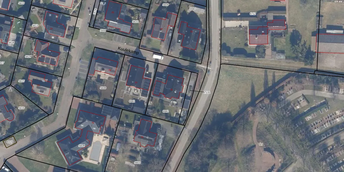 Het perceel waarop Kuulekamp 35 staat heeft een oppervlakte van 621 m². Dit is een groot perceel. De perceeloppervlakte wordt geregistreerd door het Kadaster. Gedetailleerde informatie over de maten van dit perceel kunt u vinden in het rapport Kadastrale kaart met maatvoering van Kuulekamp 35.