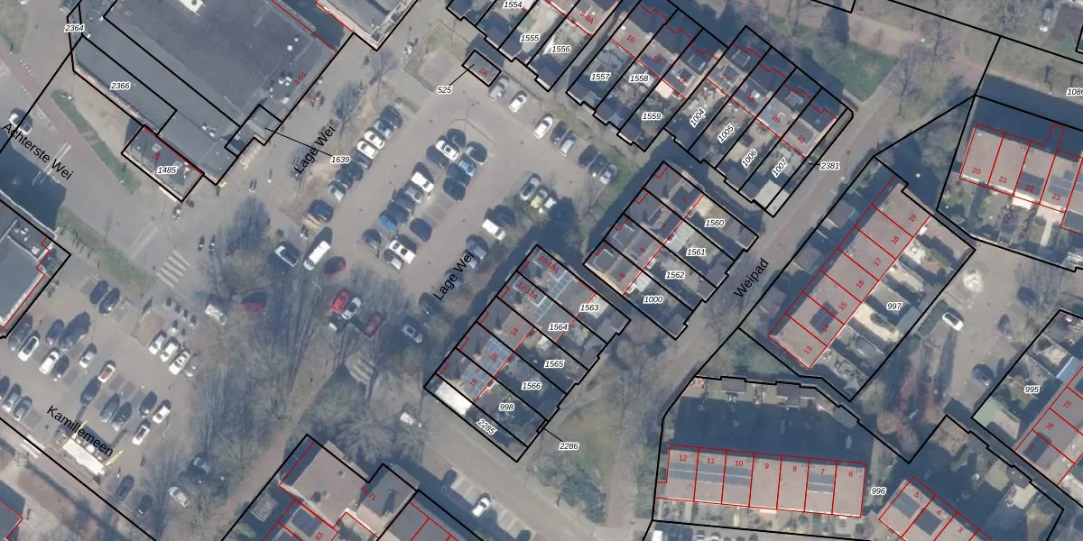 Lage Wei 10 is gelegen op kadastraal perceel HDW00F1563. Deze kadastrale aanduiding is uniek en wordt gebruikt door het Kadaster om eigendomsrechten en andere zakelijke rechten vast te leggen. Het perceel maakt onderdeel uit van de kadastrale gemeente Harderwijk.