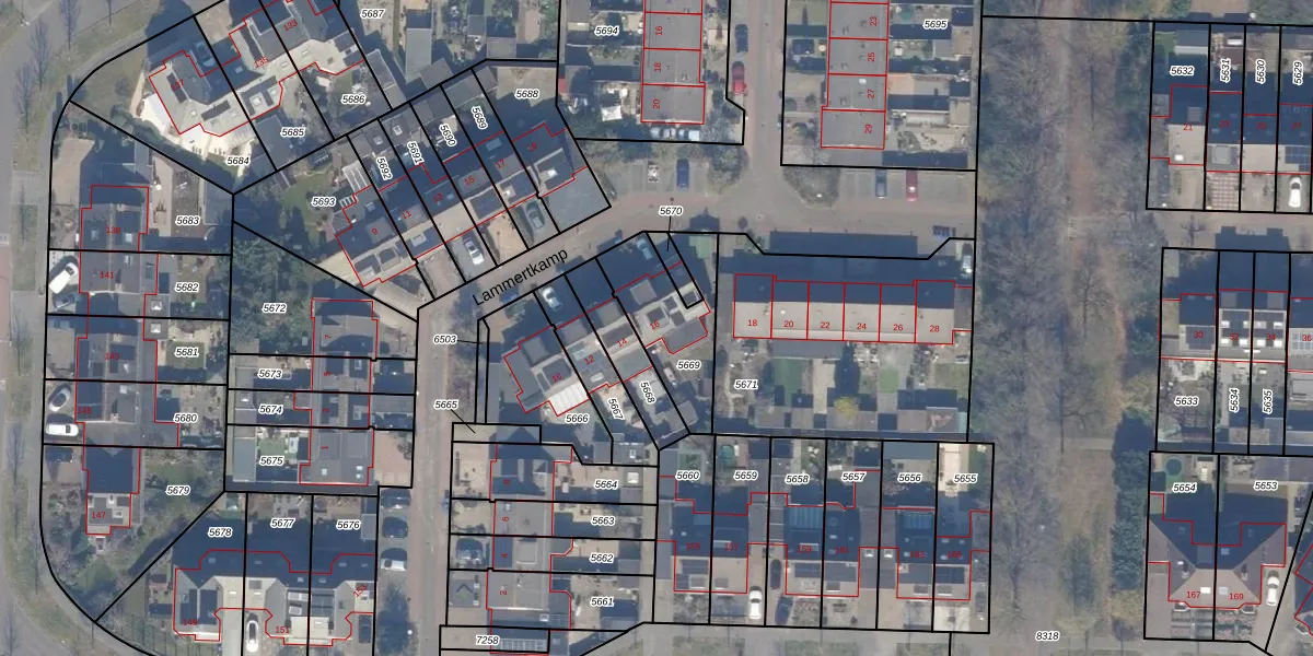Het perceel waarop Lammertkamp 16 staat heeft een oppervlakte van 316 m². Dit is een groot perceel. De perceeloppervlakte wordt geregistreerd door het Kadaster. Gedetailleerde informatie over de maten van dit perceel kunt u vinden in het rapport Kadastrale kaart met maatvoering van Lammertkamp 16.