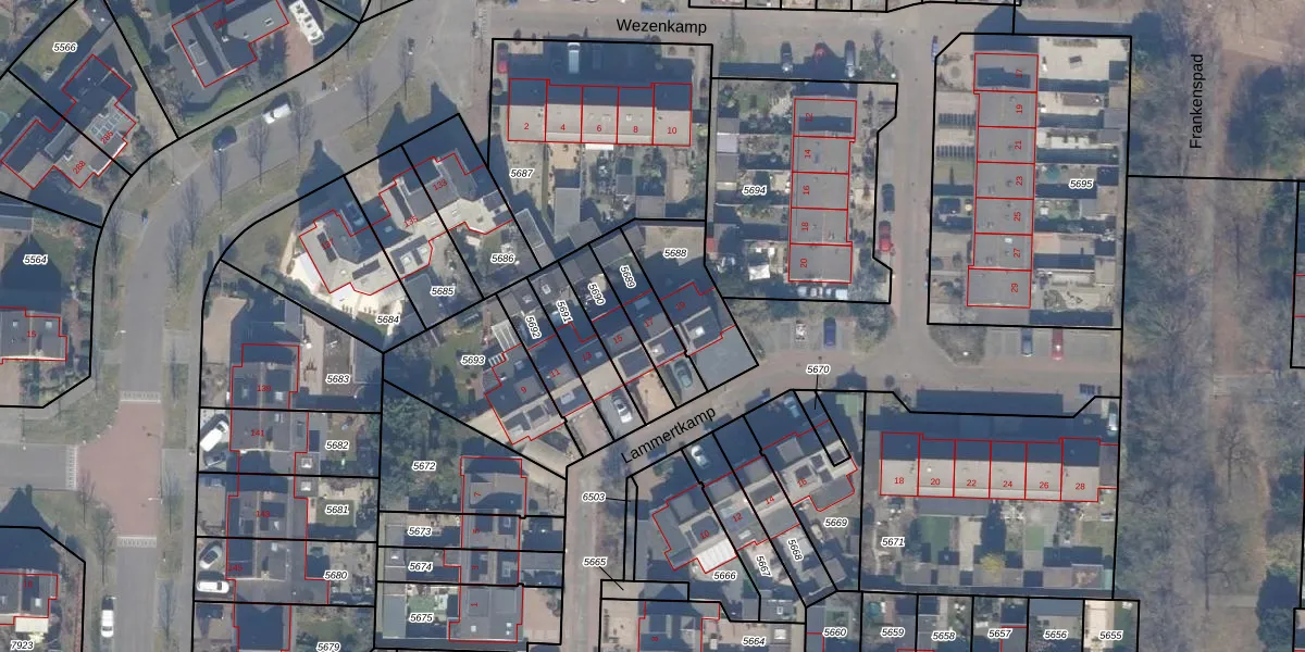 Het perceel waarop Lammertkamp 17 staat heeft een oppervlakte van 154 m². Dit is een middelgroot perceel. De perceeloppervlakte wordt geregistreerd door het Kadaster. Gedetailleerde informatie over de maten van dit perceel kunt u vinden in het rapport Kadastrale kaart met maatvoering van Lammertkamp 17.