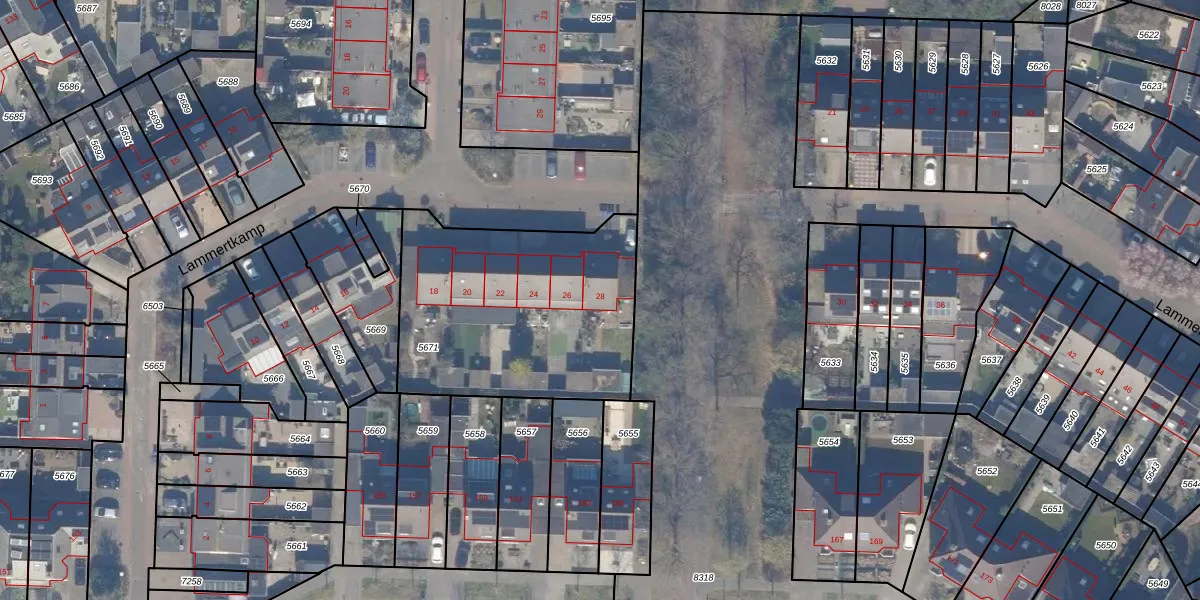 Het perceel waarop Lammertkamp 28 staat heeft een oppervlakte van 1118 m². Dit is een zeer groot perceel. De perceeloppervlakte wordt geregistreerd door het Kadaster. Gedetailleerde informatie over de maten van dit perceel kunt u vinden in het rapport Kadastrale kaart met maatvoering van Lammertkamp 28.