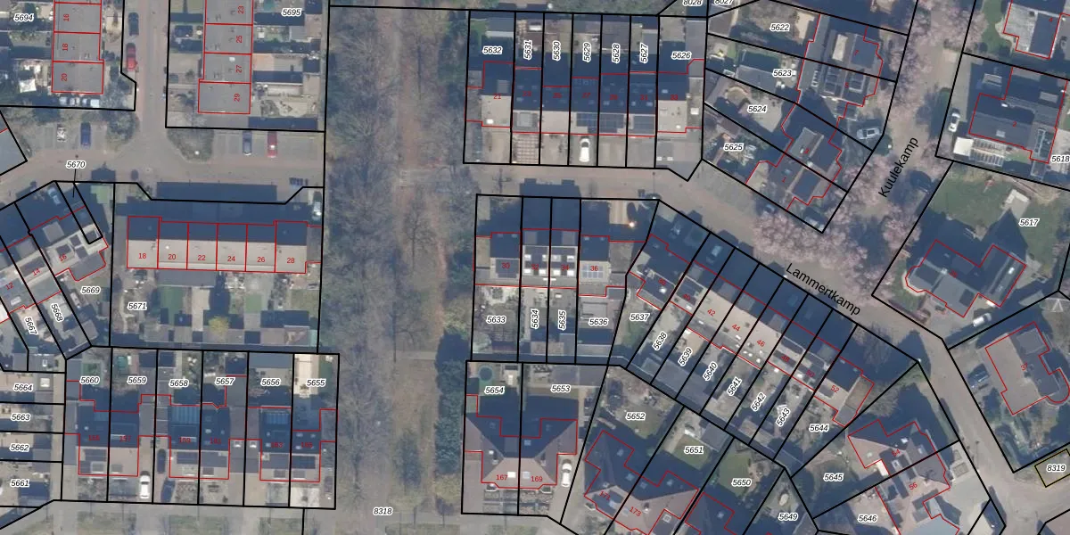 Het perceel waarop Lammertkamp 32 staat heeft een oppervlakte van 167 m². Dit is een middelgroot perceel. De perceeloppervlakte wordt geregistreerd door het Kadaster. Gedetailleerde informatie over de maten van dit perceel kunt u vinden in het rapport Kadastrale kaart met maatvoering van Lammertkamp 32.