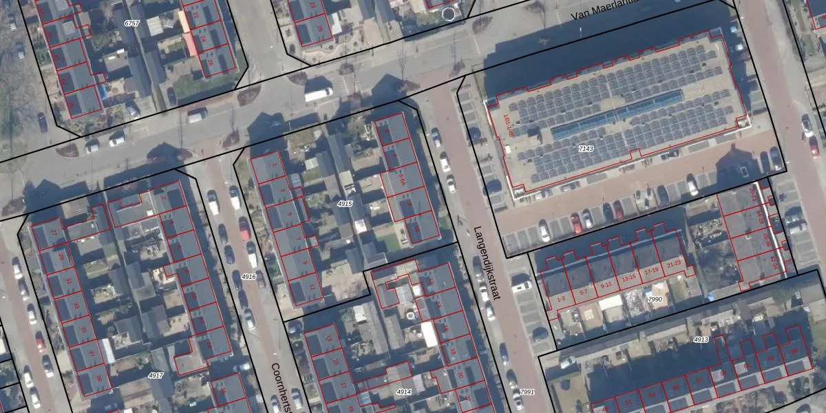 Het perceel waarop Langendijkstraat 8 staat heeft een oppervlakte van 1821 m². Dit is een zeer groot perceel. De perceeloppervlakte wordt geregistreerd door het Kadaster. Gedetailleerde informatie over de maten van dit perceel kunt u vinden in het rapport Kadastrale kaart met maatvoering van Langendijkstraat 8.