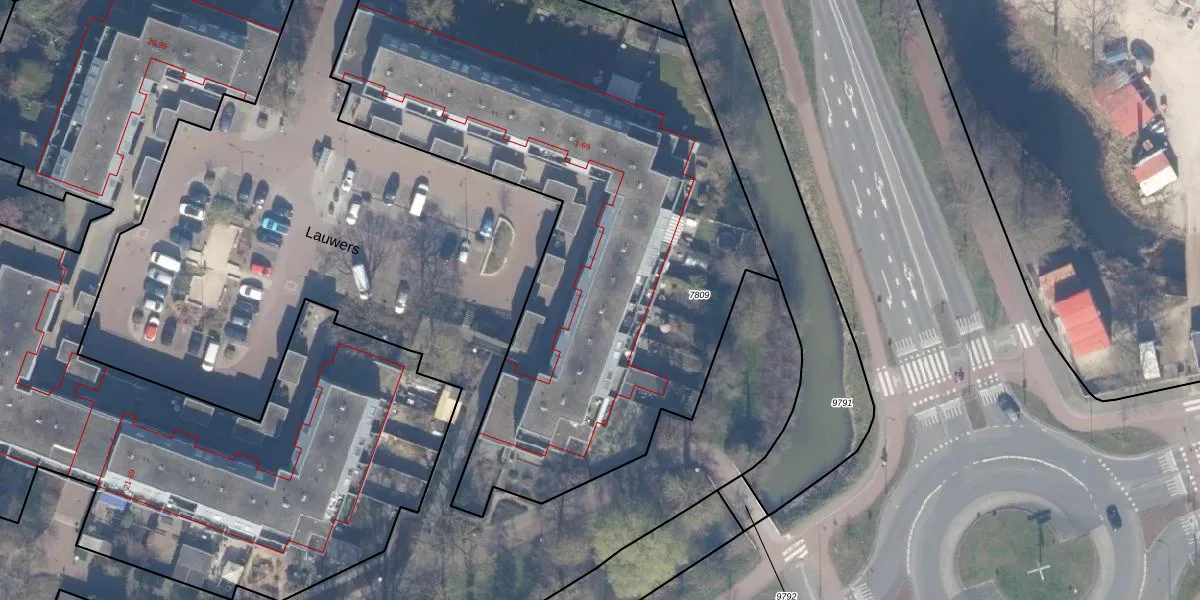 Het perceel waarop Lauwers 15 staat heeft een oppervlakte van 3565 m². Dit is een zeer groot perceel. De perceeloppervlakte wordt geregistreerd door het Kadaster. Gedetailleerde informatie over de maten van dit perceel kunt u vinden in het rapport Kadastrale kaart met maatvoering van Lauwers 15.