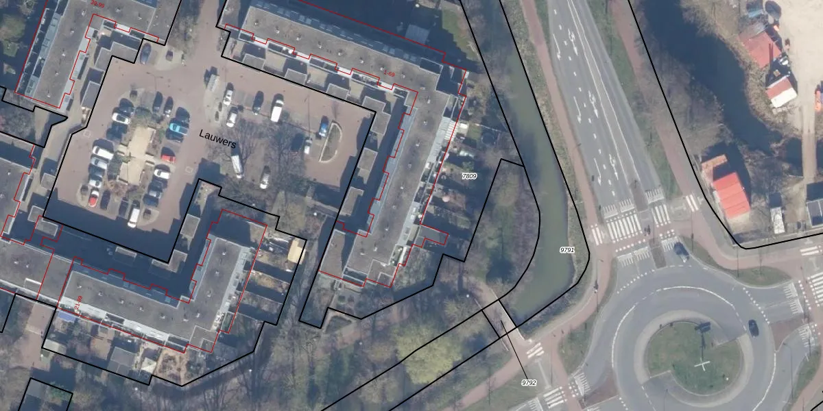 Het perceel waarop Lauwers 64 staat heeft een oppervlakte van 3565 m². Dit is een zeer groot perceel. De perceeloppervlakte wordt geregistreerd door het Kadaster. Gedetailleerde informatie over de maten van dit perceel kunt u vinden in het rapport Kadastrale kaart met maatvoering van Lauwers 64.
