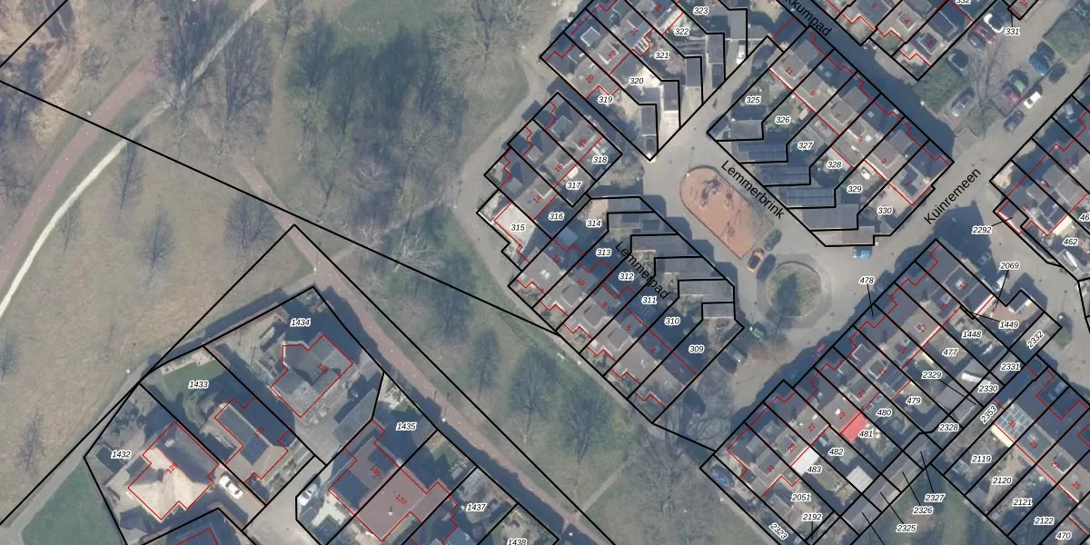 Gebruik de zoekbalk of klik op een perceel voor informatie over de adressen binnen dit perceel.