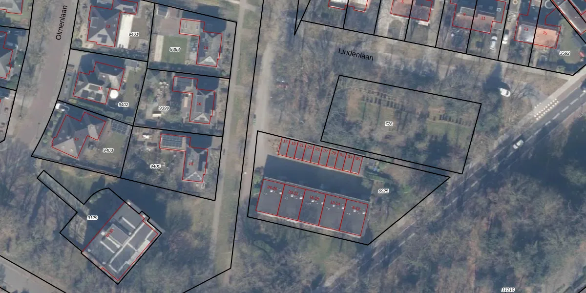 Het perceel waarop Lindenlaan 19 staat heeft een oppervlakte van 1605 m². Dit is een zeer groot perceel. De perceeloppervlakte wordt geregistreerd door het Kadaster. Gedetailleerde informatie over de maten van dit perceel kunt u vinden in het rapport Kadastrale kaart met maatvoering van Lindenlaan 19.
