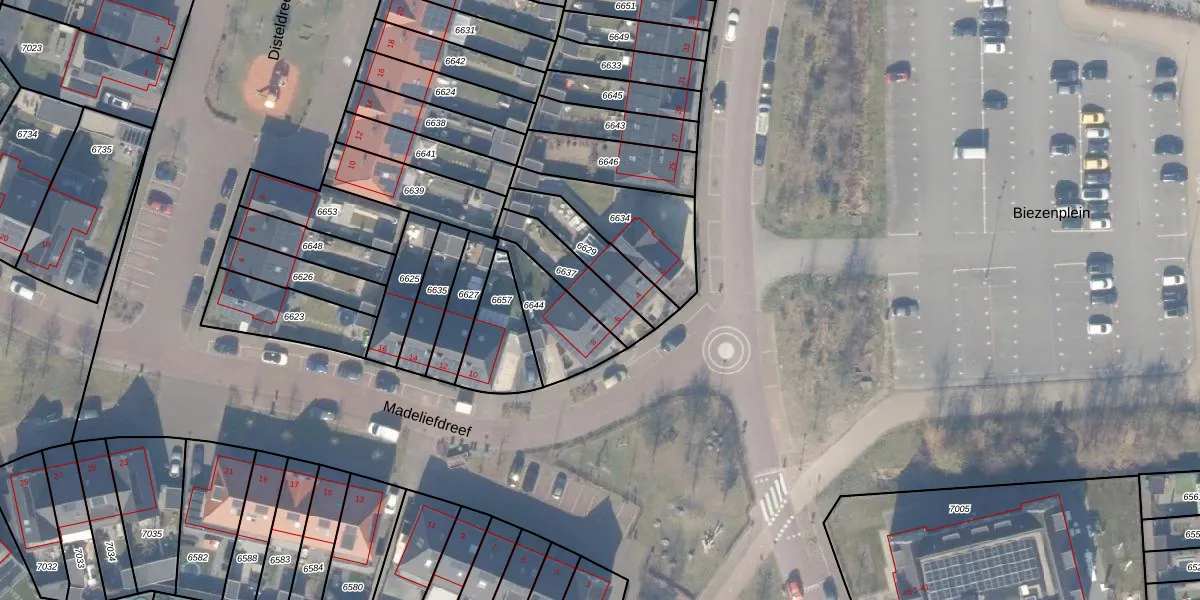 Madeliefdreef 6 is gelegen op kadastraal perceel HDW00I6637. Deze kadastrale aanduiding is uniek en wordt gebruikt door het Kadaster om eigendomsrechten en andere zakelijke rechten vast te leggen. Het perceel maakt onderdeel uit van de kadastrale gemeente Harderwijk.