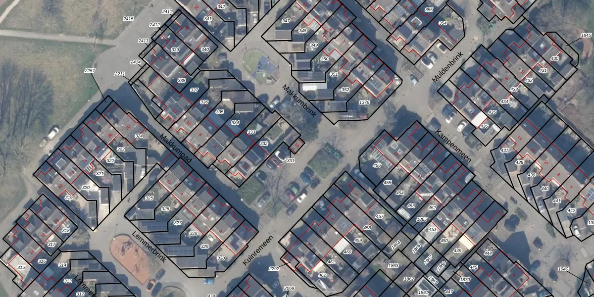 Gebruik de zoekbalk of klik op een perceel voor informatie over de adressen binnen dit perceel.