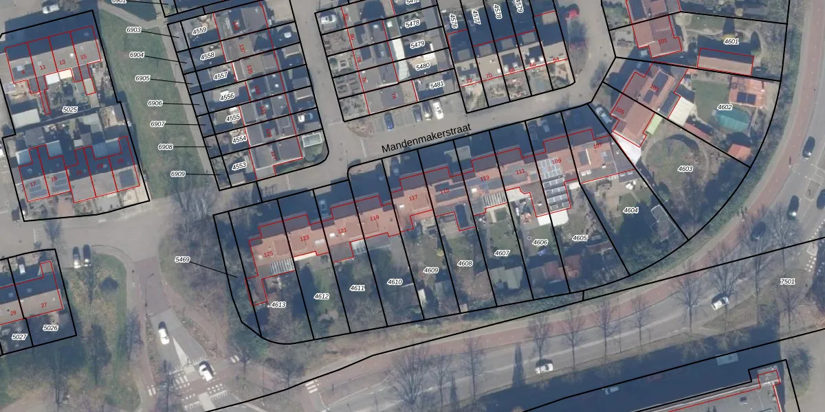 Mandenmakerstraat 117 is gelegen op kadastraal perceel HDW00B4609. Deze kadastrale aanduiding is uniek en wordt gebruikt door het Kadaster om eigendomsrechten en andere zakelijke rechten vast te leggen. Het perceel maakt onderdeel uit van de kadastrale gemeente Harderwijk.