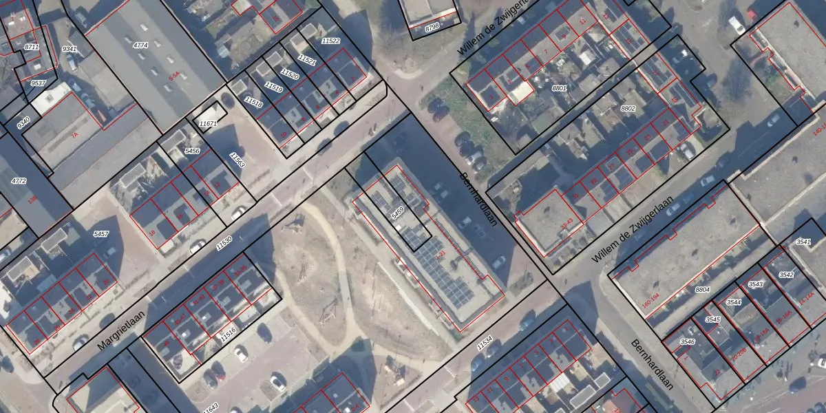 Het perceel waarop Margrietlaan 1 staat heeft een oppervlakte van 5054 m². Dit is een zeer groot perceel. De perceeloppervlakte wordt geregistreerd door het Kadaster. Gedetailleerde informatie over de maten van dit perceel kunt u vinden in het rapport Kadastrale kaart met maatvoering van Margrietlaan 1.
