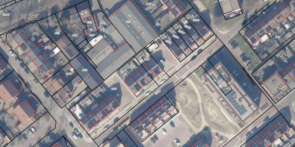 Het perceel waarop Margrietlaan 14 staat heeft een oppervlakte van 1529 m². Dit is een zeer groot perceel. De perceeloppervlakte wordt geregistreerd door het Kadaster. Gedetailleerde informatie over de maten van dit perceel kunt u vinden in het rapport Kadastrale kaart met maatvoering van Margrietlaan 14.