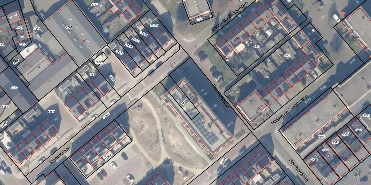 Het perceel waarop Margrietlaan 21 staat heeft een oppervlakte van 5054 m². Dit is een zeer groot perceel. De perceeloppervlakte wordt geregistreerd door het Kadaster. Gedetailleerde informatie over de maten van dit perceel kunt u vinden in het rapport Kadastrale kaart met maatvoering van Margrietlaan 21.