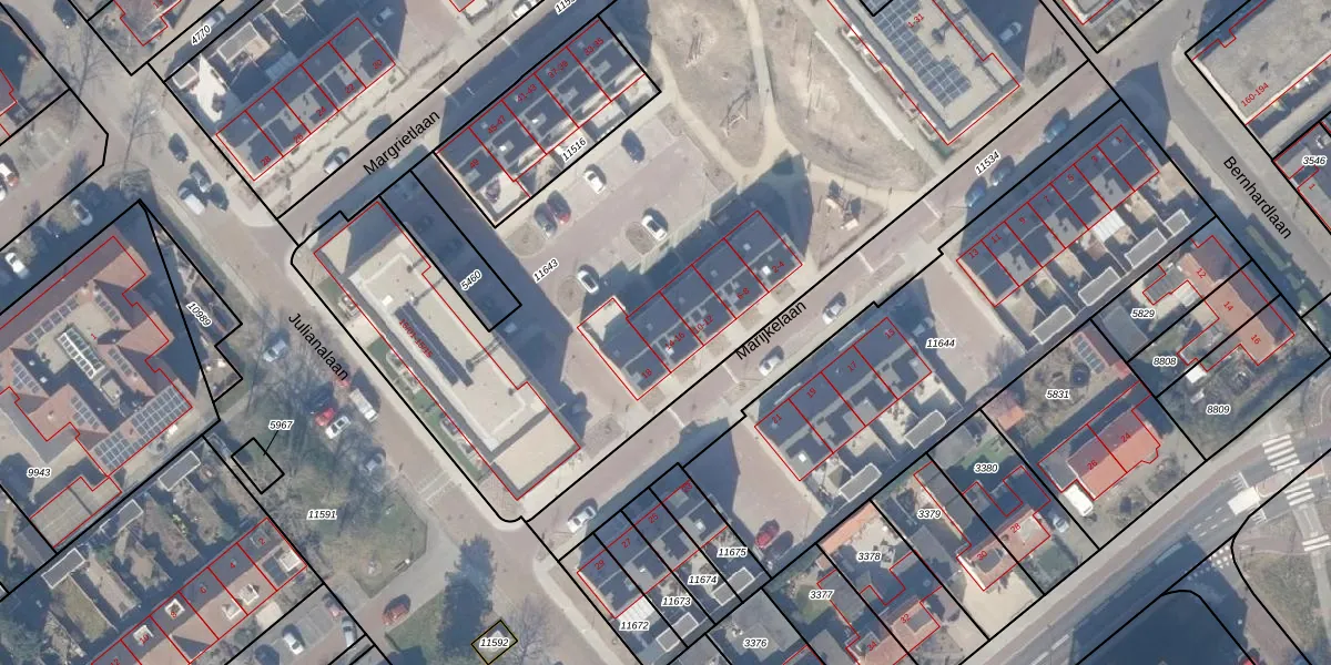 Het perceel waarop Marijkelaan 16 staat heeft een oppervlakte van 5054 m². Dit is een zeer groot perceel. De perceeloppervlakte wordt geregistreerd door het Kadaster. Gedetailleerde informatie over de maten van dit perceel kunt u vinden in het rapport Kadastrale kaart met maatvoering van Marijkelaan 16.