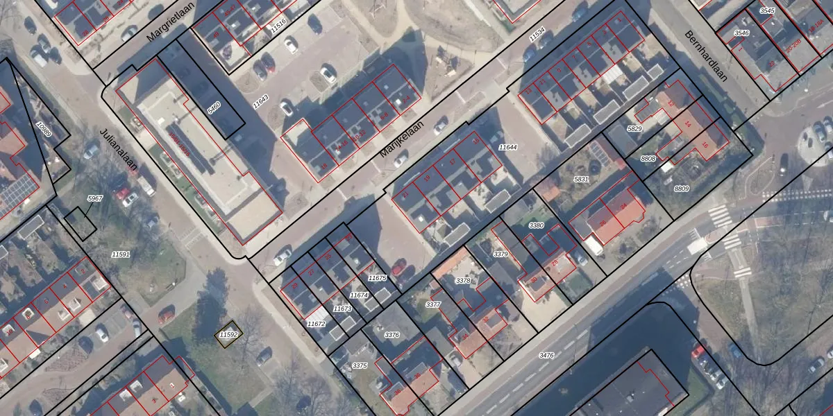 Het perceel waarop Marijkelaan 21 staat heeft een oppervlakte van 1930 m². Dit is een zeer groot perceel. De perceeloppervlakte wordt geregistreerd door het Kadaster. Gedetailleerde informatie over de maten van dit perceel kunt u vinden in het rapport Kadastrale kaart met maatvoering van Marijkelaan 21.