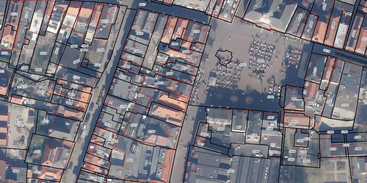 Het perceel waarop Markt 14 staat heeft een oppervlakte van 295 m². Dit is een middelgroot perceel. De perceeloppervlakte wordt geregistreerd door het Kadaster. Gedetailleerde informatie over de maten van dit perceel kunt u vinden in het rapport Kadastrale kaart met maatvoering van Markt 14.