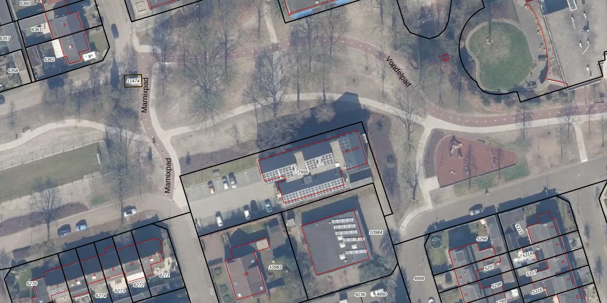 Het perceel waarop Marnixstraat 1-02 staat heeft een oppervlakte van 1349 m². Dit is een zeer groot perceel. De perceeloppervlakte wordt geregistreerd door het Kadaster. Gedetailleerde informatie over de maten van dit perceel kunt u vinden in het rapport Kadastrale kaart met maatvoering van Marnixstraat 1-02.