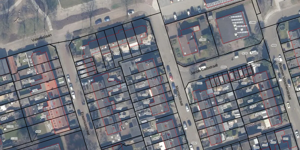 Het perceel waarop Marnixstraat 4 staat heeft een oppervlakte van 163 m². Dit is een middelgroot perceel. De perceeloppervlakte wordt geregistreerd door het Kadaster. Gedetailleerde informatie over de maten van dit perceel kunt u vinden in het rapport Kadastrale kaart met maatvoering van Marnixstraat 4.