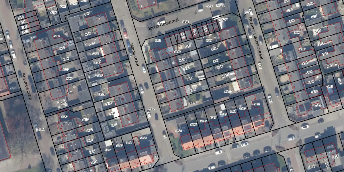 Het perceel waarop Marnixstraat 7 staat heeft een oppervlakte van 185 m². Dit is een middelgroot perceel. De perceeloppervlakte wordt geregistreerd door het Kadaster. Gedetailleerde informatie over de maten van dit perceel kunt u vinden in het rapport Kadastrale kaart met maatvoering van Marnixstraat 7.