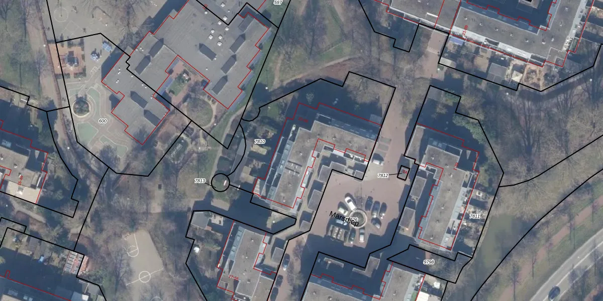 Het perceel waarop Marsdiep 25 staat heeft een oppervlakte van 2590 m². Dit is een zeer groot perceel. De perceeloppervlakte wordt geregistreerd door het Kadaster. Gedetailleerde informatie over de maten van dit perceel kunt u vinden in het rapport Kadastrale kaart met maatvoering van Marsdiep 25.