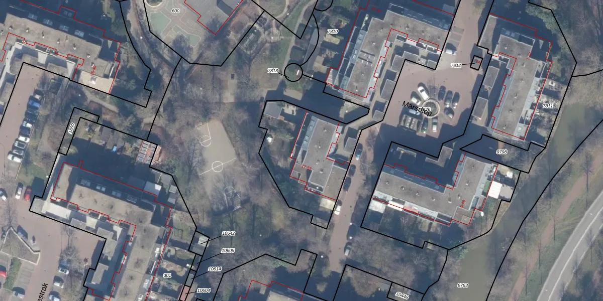 Het perceel waarop Marsdiep 53 staat heeft een oppervlakte van 2590 m². Dit is een zeer groot perceel. De perceeloppervlakte wordt geregistreerd door het Kadaster. Gedetailleerde informatie over de maten van dit perceel kunt u vinden in het rapport Kadastrale kaart met maatvoering van Marsdiep 53.