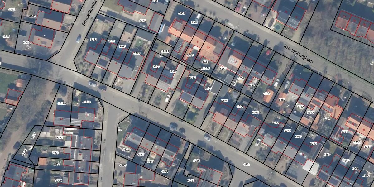 Gebruik de zoekbalk of klik op een perceel voor informatie over de adressen binnen dit perceel.