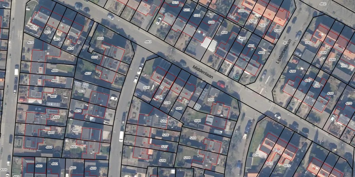 Het perceel waarop Middenlaan 18 staat heeft een oppervlakte van 163 m². Dit is een middelgroot perceel. De perceeloppervlakte wordt geregistreerd door het Kadaster. Gedetailleerde informatie over de maten van dit perceel kunt u vinden in het rapport Kadastrale kaart met maatvoering van Middenlaan 18.
