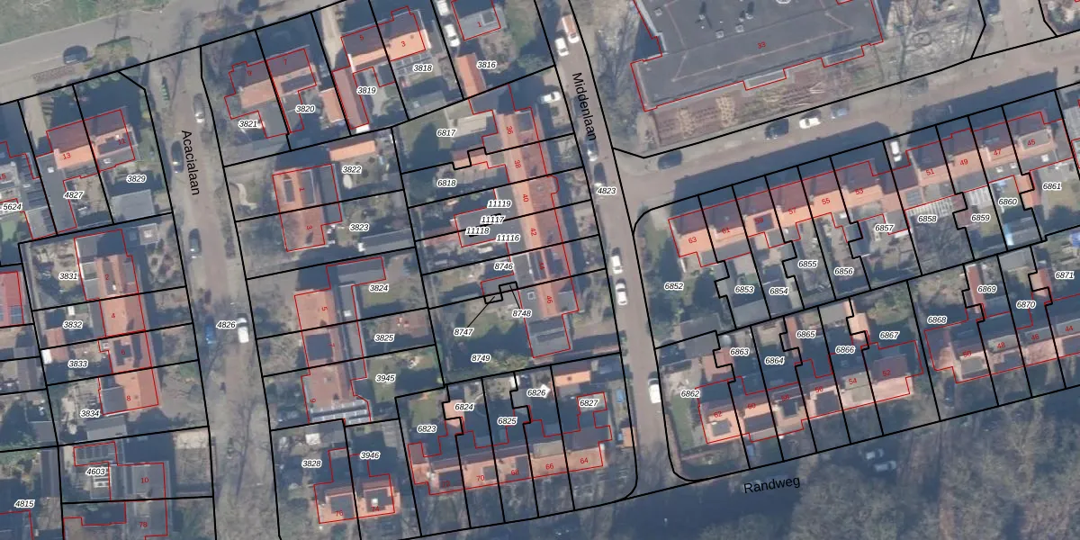 Het perceel waarop Middenlaan 44 staat heeft een oppervlakte van 213 m². Dit is een middelgroot perceel. De perceeloppervlakte wordt geregistreerd door het Kadaster. Gedetailleerde informatie over de maten van dit perceel kunt u vinden in het rapport Kadastrale kaart met maatvoering van Middenlaan 44.