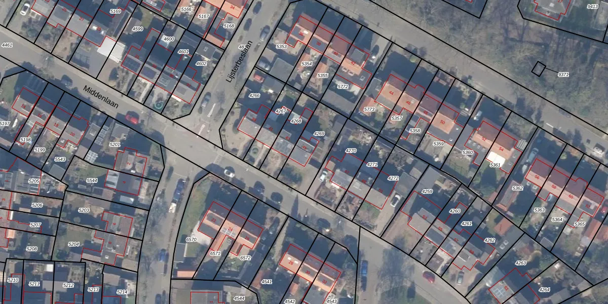 Het perceel waarop Middenlaan 45 staat heeft een oppervlakte van 327 m². Dit is een groot perceel. De perceeloppervlakte wordt geregistreerd door het Kadaster. Gedetailleerde informatie over de maten van dit perceel kunt u vinden in het rapport Kadastrale kaart met maatvoering van Middenlaan 45.