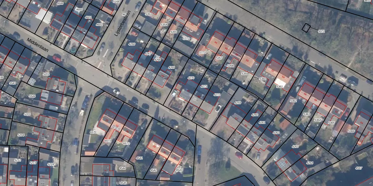 Het perceel waarop Middenlaan 47 staat heeft een oppervlakte van 327 m². Dit is een groot perceel. De perceeloppervlakte wordt geregistreerd door het Kadaster. Gedetailleerde informatie over de maten van dit perceel kunt u vinden in het rapport Kadastrale kaart met maatvoering van Middenlaan 47.