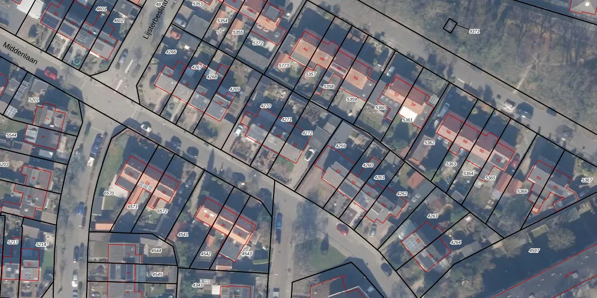 Het perceel waarop Middenlaan 51 staat heeft een oppervlakte van 340 m². Dit is een groot perceel. De perceeloppervlakte wordt geregistreerd door het Kadaster. Gedetailleerde informatie over de maten van dit perceel kunt u vinden in het rapport Kadastrale kaart met maatvoering van Middenlaan 51.