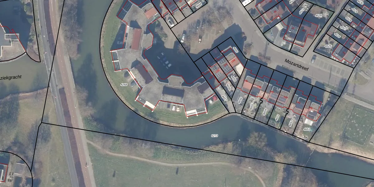 Mozartdreef 100 is gelegen op kadastraal perceel HDW00I4268. Deze kadastrale aanduiding is uniek en wordt gebruikt door het Kadaster om eigendomsrechten en andere zakelijke rechten vast te leggen. Het perceel maakt onderdeel uit van de kadastrale gemeente Harderwijk.