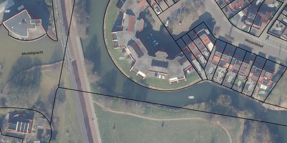 Het perceel waarop Mozartdreef 122 staat heeft een oppervlakte van 3025 m². Dit is een zeer groot perceel. De perceeloppervlakte wordt geregistreerd door het Kadaster. Gedetailleerde informatie over de maten van dit perceel kunt u vinden in het rapport Kadastrale kaart met maatvoering van Mozartdreef 122.