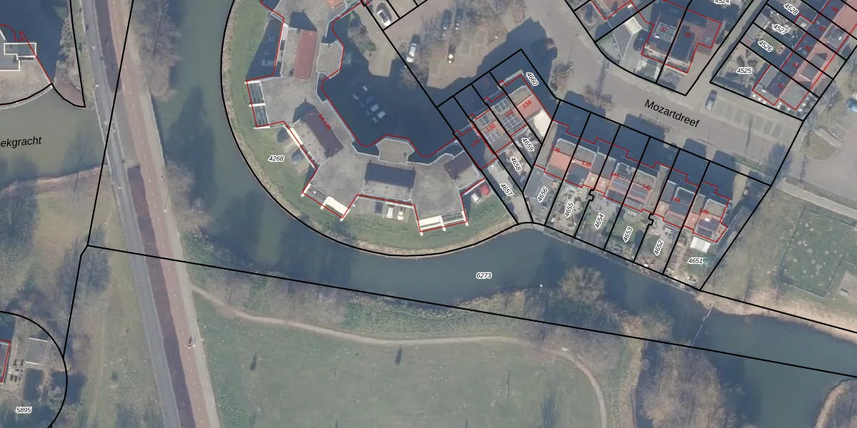 Het perceel waarop Mozartdreef 124 staat heeft een oppervlakte van 3025 m². Dit is een zeer groot perceel. De perceeloppervlakte wordt geregistreerd door het Kadaster. Gedetailleerde informatie over de maten van dit perceel kunt u vinden in het rapport Kadastrale kaart met maatvoering van Mozartdreef 124.