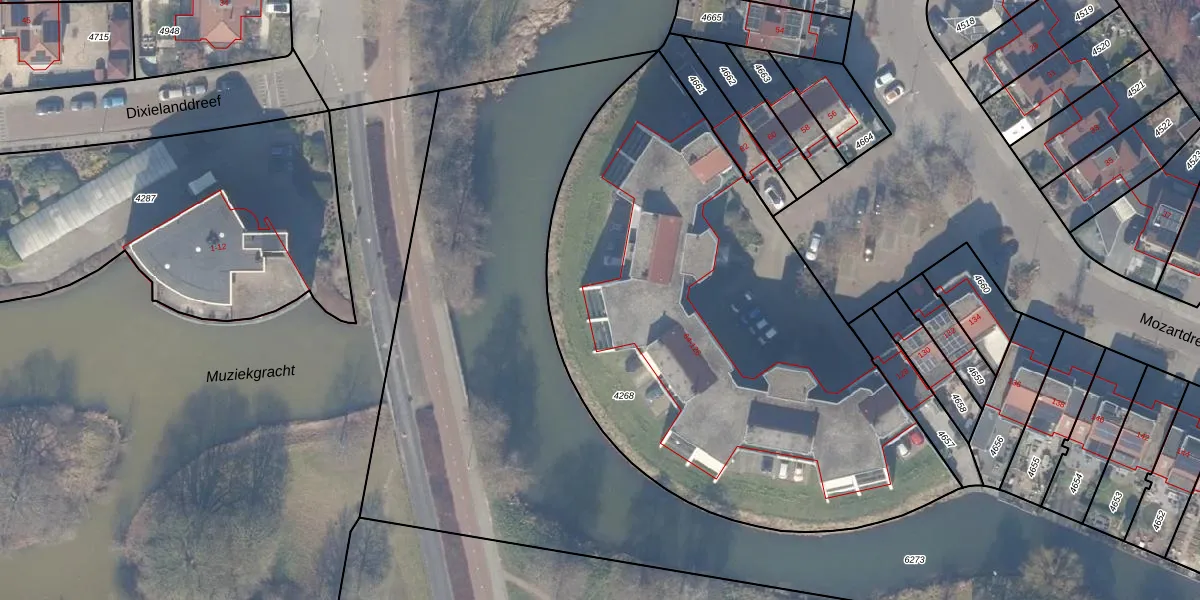 Het perceel waarop Mozartdreef 92 staat heeft een oppervlakte van 3025 m². Dit is een zeer groot perceel. De perceeloppervlakte wordt geregistreerd door het Kadaster. Gedetailleerde informatie over de maten van dit perceel kunt u vinden in het rapport Kadastrale kaart met maatvoering van Mozartdreef 92.