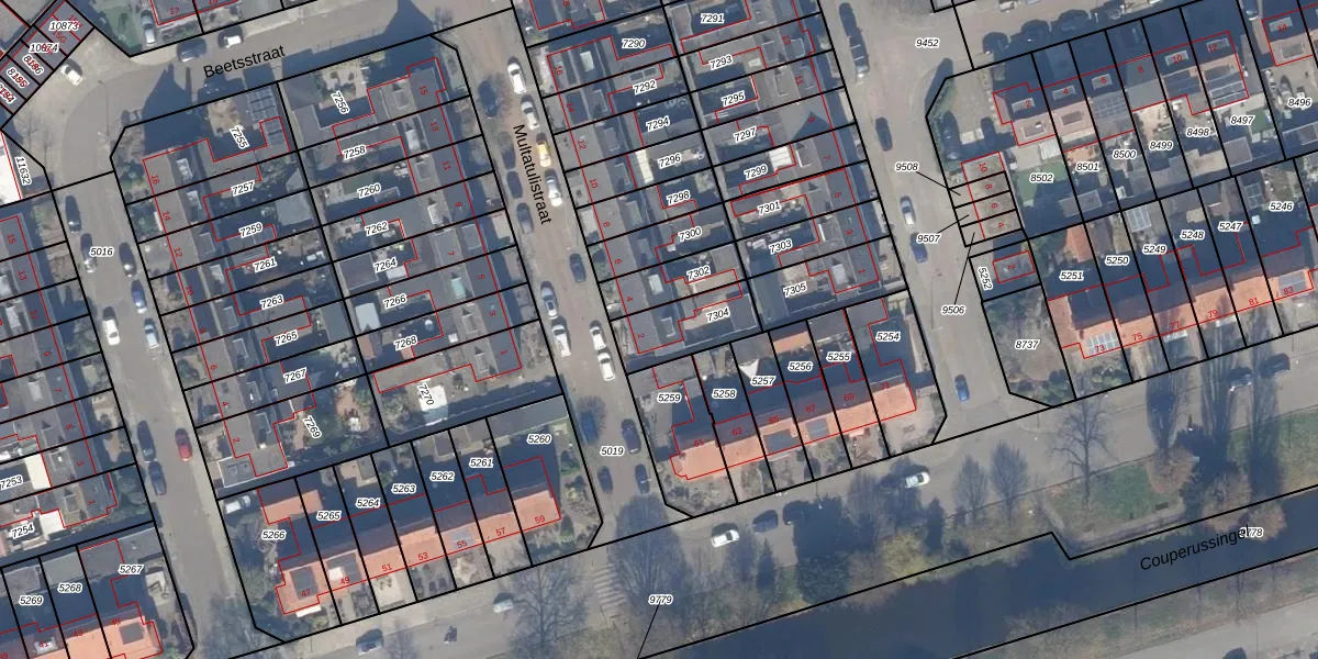 Gebruik de zoekbalk of klik op een perceel voor informatie over de adressen binnen dit perceel.