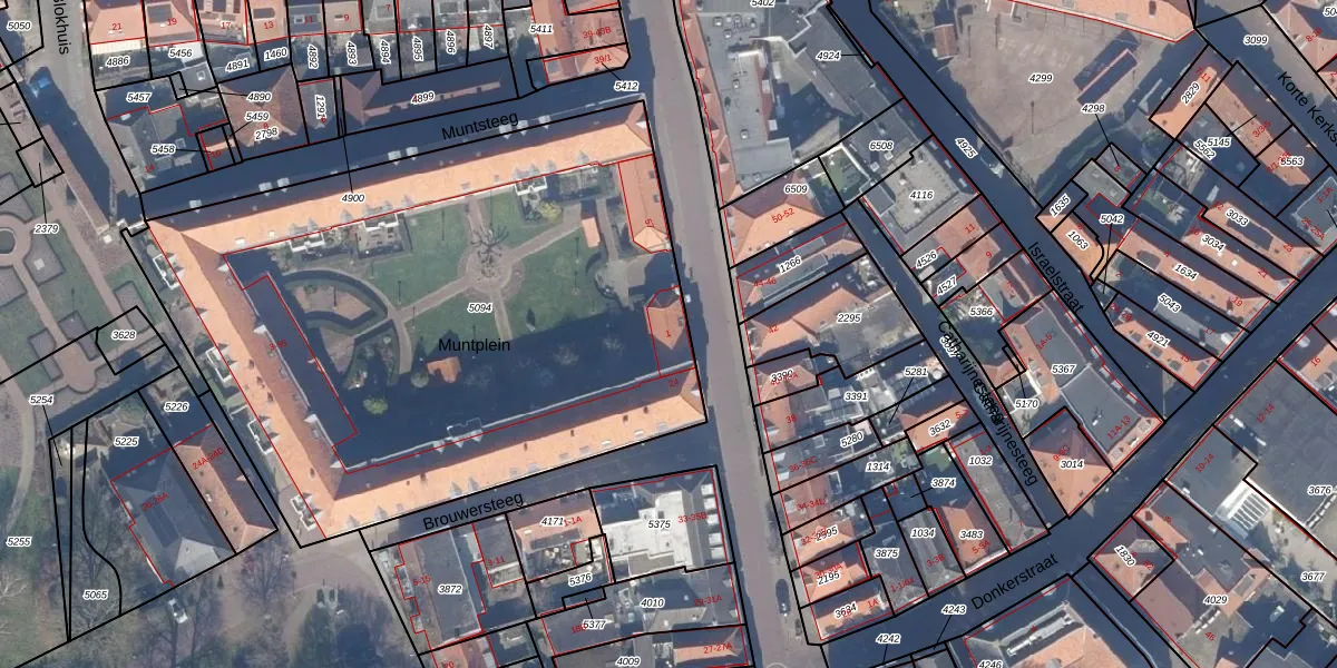 Het perceel waarop Muntplein 1 staat heeft een oppervlakte van 3680 m². Dit is een zeer groot perceel. De perceeloppervlakte wordt geregistreerd door het Kadaster. Gedetailleerde informatie over de maten van dit perceel kunt u vinden in het rapport Kadastrale kaart met maatvoering van Muntplein 1.