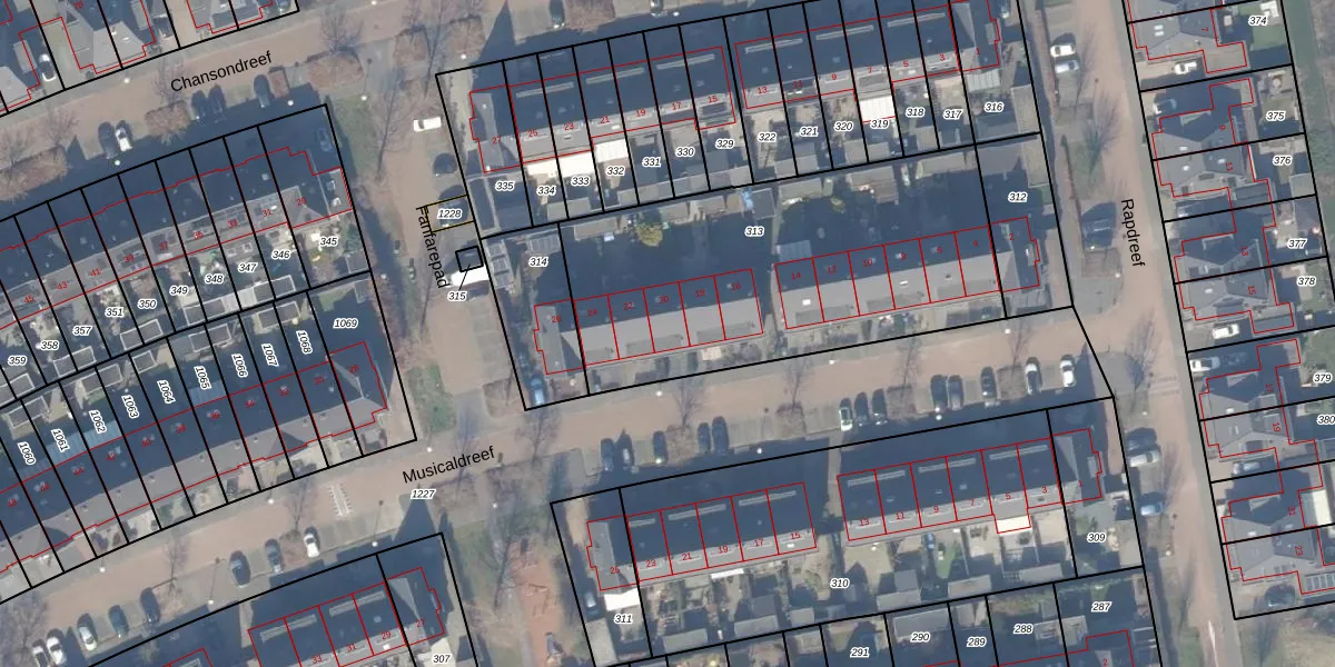 Het perceel waarop Musicaldreef 20 staat heeft een oppervlakte van 1685 m². Dit is een zeer groot perceel. De perceeloppervlakte wordt geregistreerd door het Kadaster. Gedetailleerde informatie over de maten van dit perceel kunt u vinden in het rapport Kadastrale kaart met maatvoering van Musicaldreef 20.