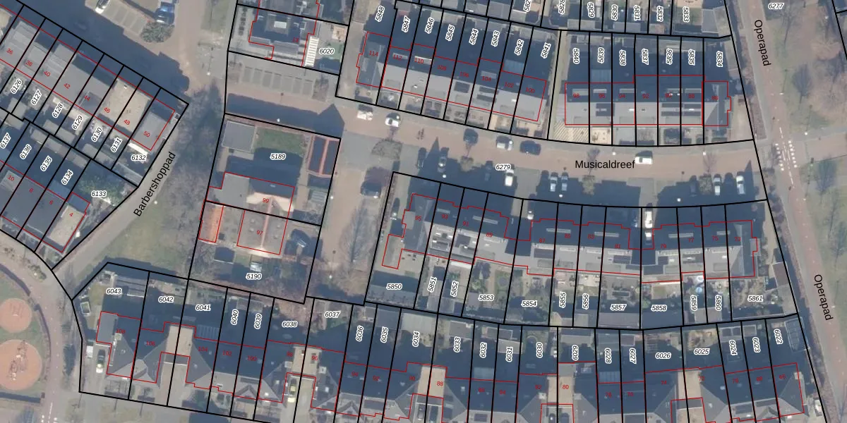 Het perceel waarop Musicaldreef 95 staat heeft een oppervlakte van 361 m². Dit is een groot perceel. De perceeloppervlakte wordt geregistreerd door het Kadaster. Gedetailleerde informatie over de maten van dit perceel kunt u vinden in het rapport Kadastrale kaart met maatvoering van Musicaldreef 95.