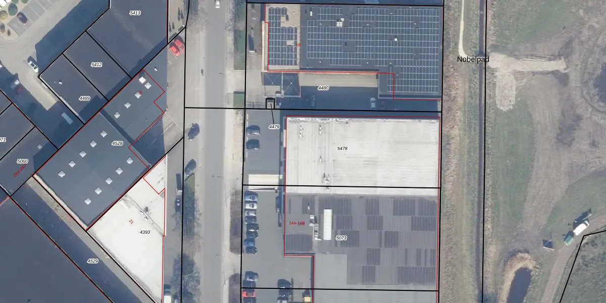 Het perceel waarop Nobelstraat 14-B staat heeft een oppervlakte van 1640 m². Dit is een zeer groot perceel. De perceeloppervlakte wordt geregistreerd door het Kadaster. Gedetailleerde informatie over de maten van dit perceel kunt u vinden in het rapport Kadastrale kaart met maatvoering van Nobelstraat 14-B.