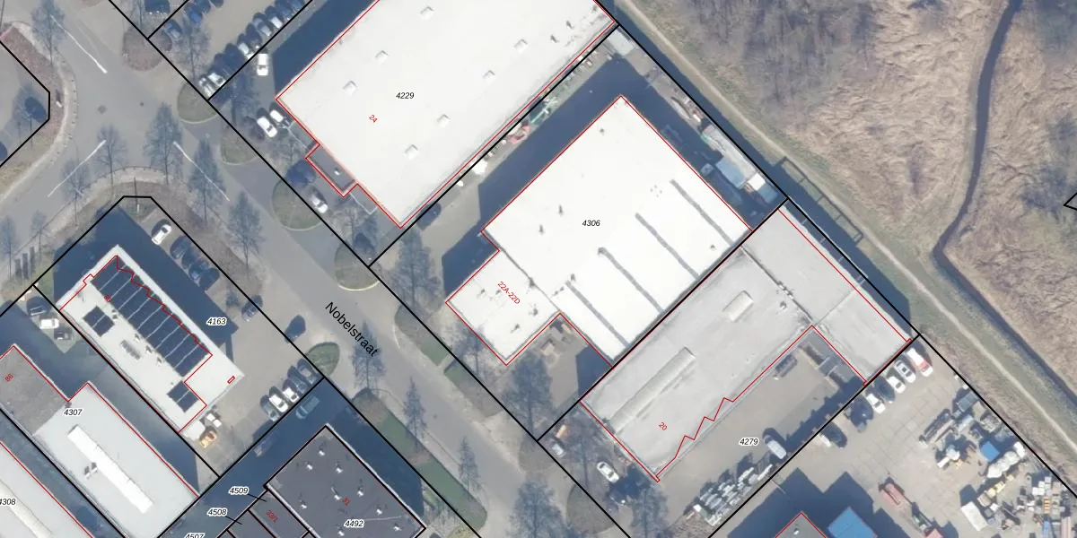 Het perceel waarop Nobelstraat 22-A staat heeft een oppervlakte van 2925 m². Dit is een zeer groot perceel. De perceeloppervlakte wordt geregistreerd door het Kadaster. Gedetailleerde informatie over de maten van dit perceel kunt u vinden in het rapport Kadastrale kaart met maatvoering van Nobelstraat 22-A.
