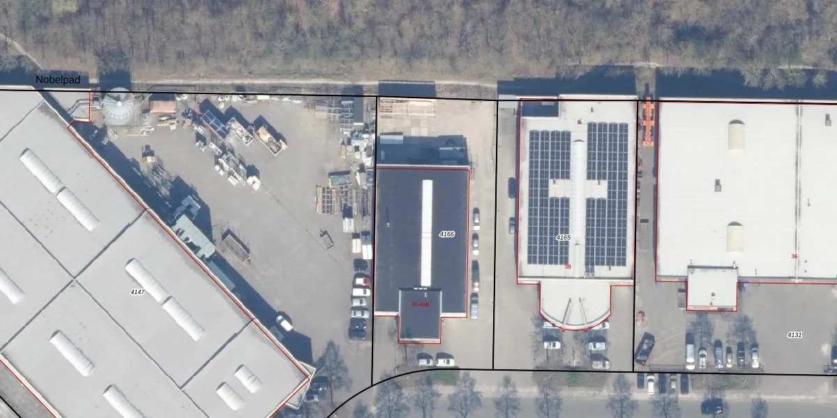 Het perceel waarop Nobelstraat 40-B staat heeft een oppervlakte van 1895 m². Dit is een zeer groot perceel. De perceeloppervlakte wordt geregistreerd door het Kadaster. Gedetailleerde informatie over de maten van dit perceel kunt u vinden in het rapport Kadastrale kaart met maatvoering van Nobelstraat 40-B.