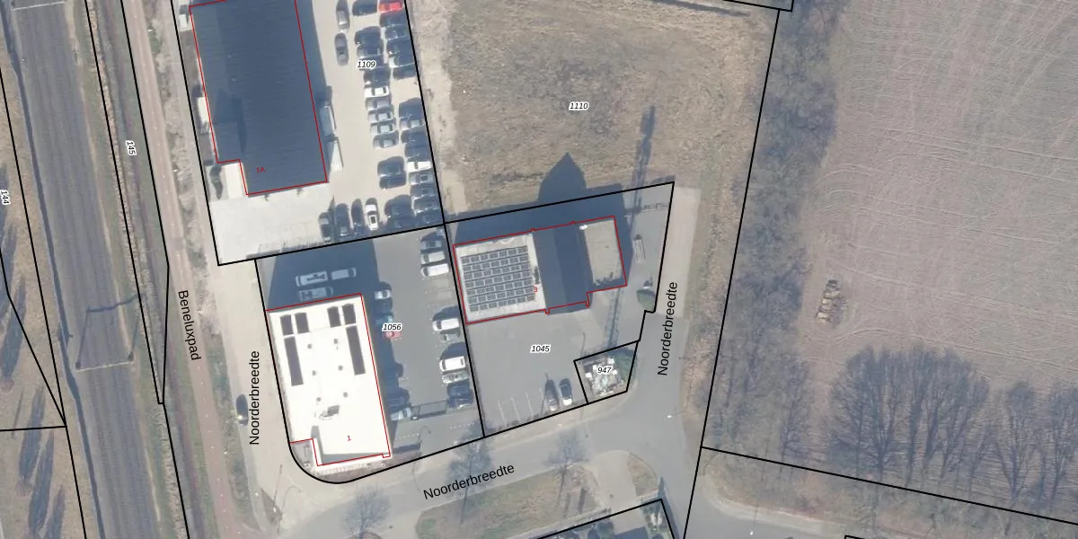 Het perceel waarop Noorderbreedte 3 staat heeft een oppervlakte van 1290 m². Dit is een zeer groot perceel. De perceeloppervlakte wordt geregistreerd door het Kadaster. Gedetailleerde informatie over de maten van dit perceel kunt u vinden in het rapport Kadastrale kaart met maatvoering van Noorderbreedte 3.