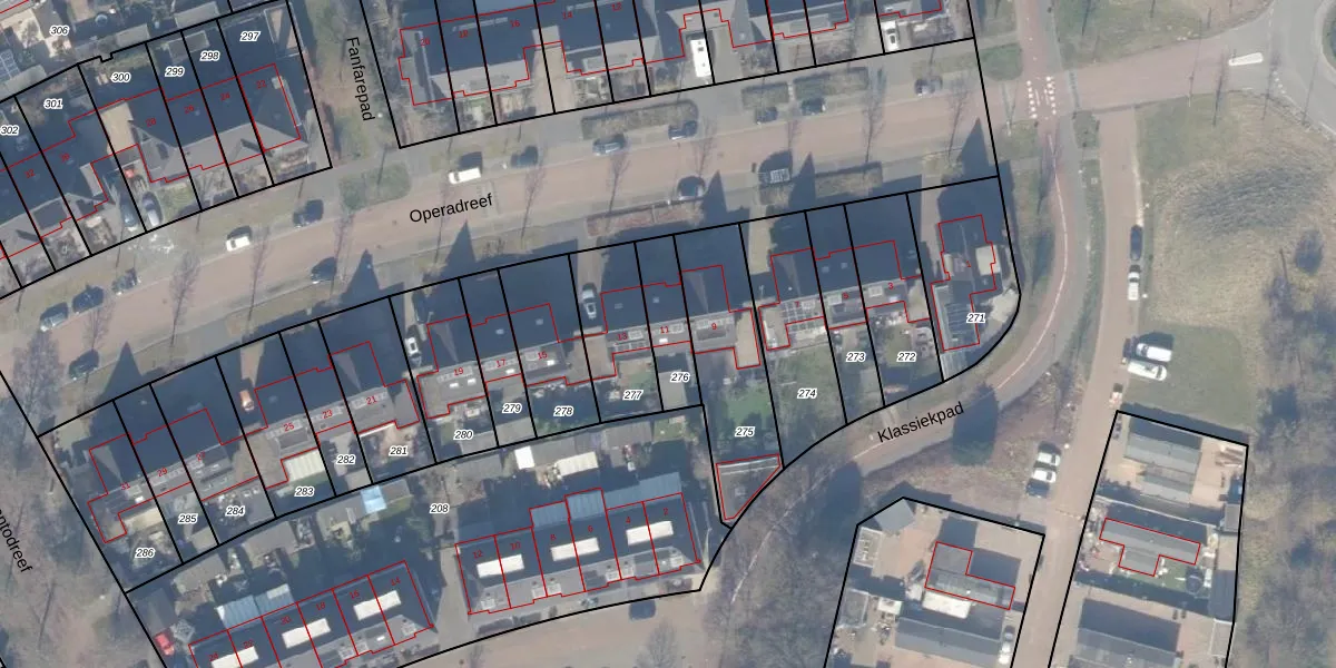 Gebruik de zoekbalk of klik op een perceel voor informatie over de adressen binnen dit perceel.