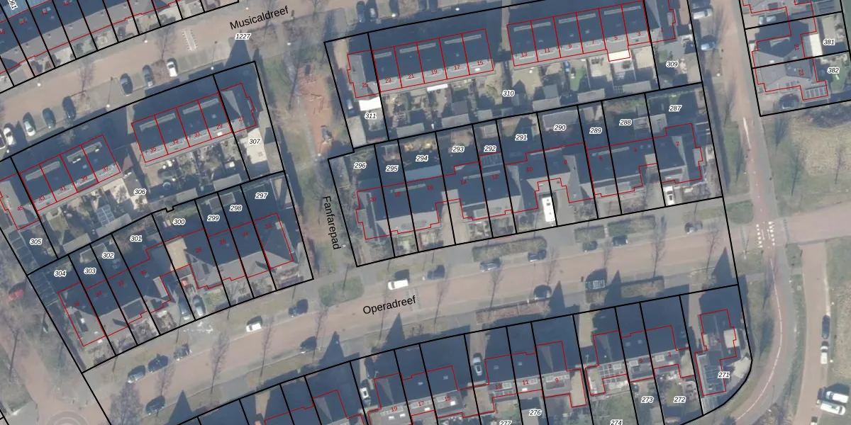 Het perceel waarop Operadreef 16 staat heeft een oppervlakte van 242 m². Dit is een middelgroot perceel. De perceeloppervlakte wordt geregistreerd door het Kadaster. Gedetailleerde informatie over de maten van dit perceel kunt u vinden in het rapport Kadastrale kaart met maatvoering van Operadreef 16.