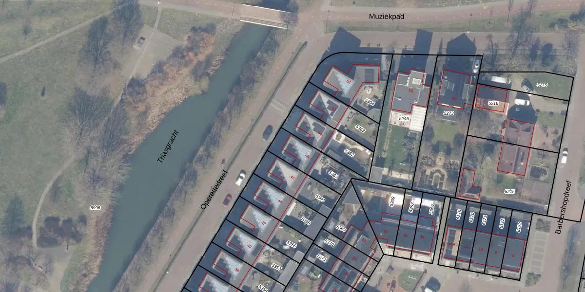 Gebruik de zoekbalk of klik op een perceel voor informatie over de adressen binnen dit perceel.